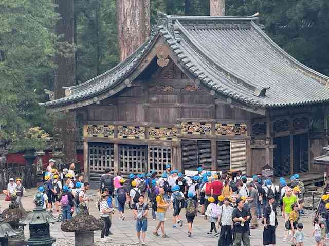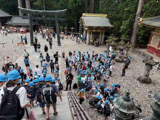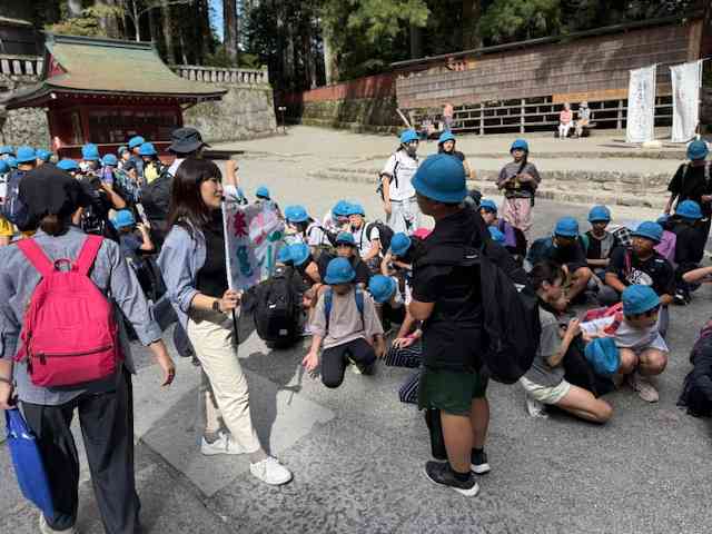 東照宮ではサプライズが待っていました。 3組の子どもたちは嬉しくて興奮しています。 境内は大変混んでいましたが、グループ活動もしっかりできていました。 これから高原学園へ行きます。